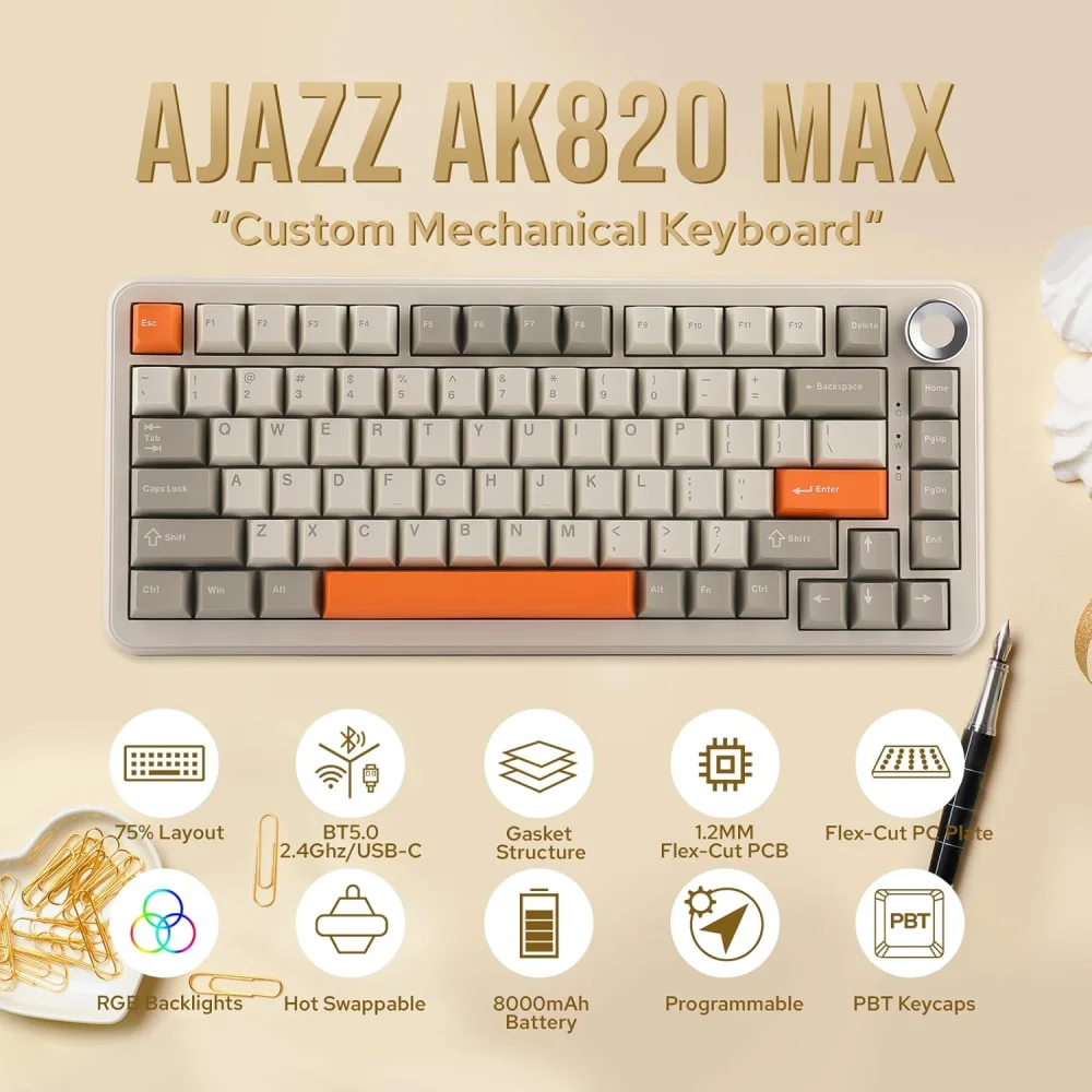Ajazz AK820 Max Plus Retro Style Wireless Mechanical Keyboard – Kompakt, Stil və Texnologiyanın Zirvəsi