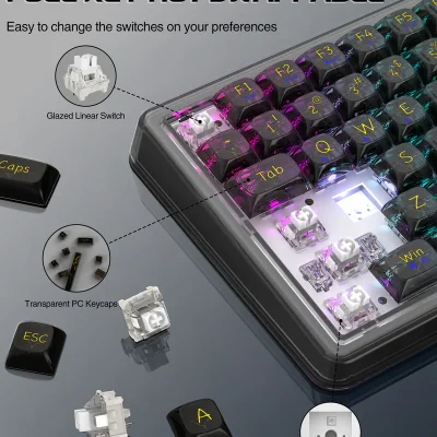 Optimized 75% Compact Layout | Gasket Structure & Hot-Swap Functionality | Vibrant 16.8 Million Color RGB Illumination | Three-Way Connectivity for Every Scenario | Tri Mode Connectivy