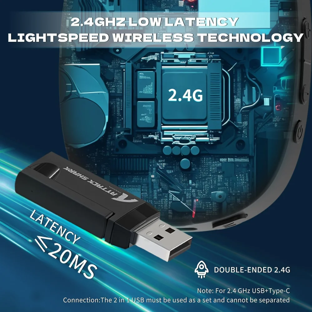Qoşulma (connection): 2.4 GHz simsiz, Bluetooth (≈ Bluetooth 5.4), həm də kabel vasitəsilə.
