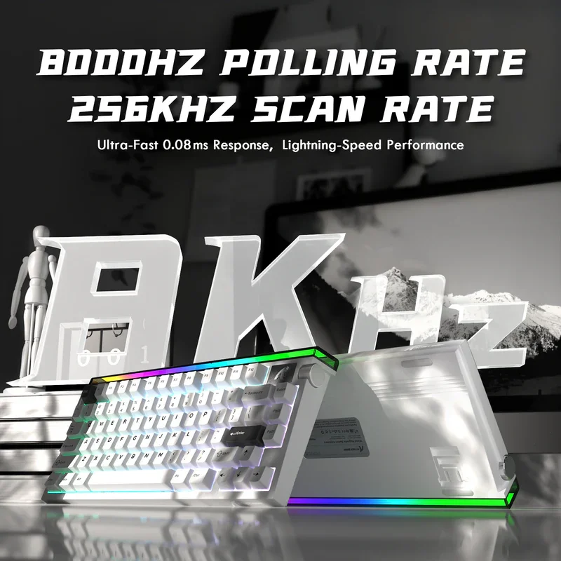 Optimized 75% Compact Layout | 8000Hz Polling Rate | Custom Lightbox | 5‑Layer Sound‑Optimizing | Tri Mode Connectivy | Gorgeous RGB Backlight