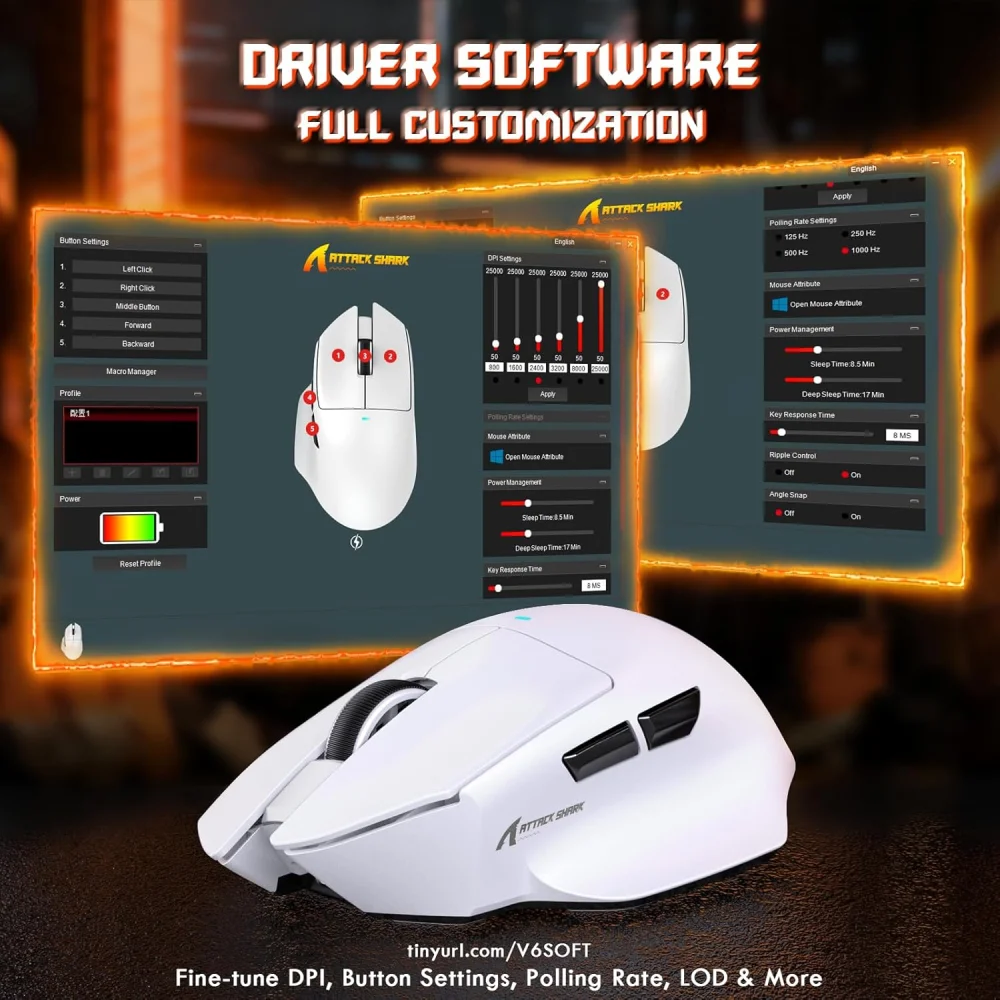 Attack Shark V6 Ultra-Light Tri-Mode Gaming Mouse with Charging Dock üstünlükləri