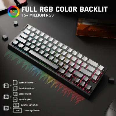 Optimized 60% Compact Layout | Gasket Structure & Hot-Swap Functionality | Vibrant 16.8 Million Color RGB Illumination | Three-Way Connectivity for Every Scenario | Tri Mode Connectivy