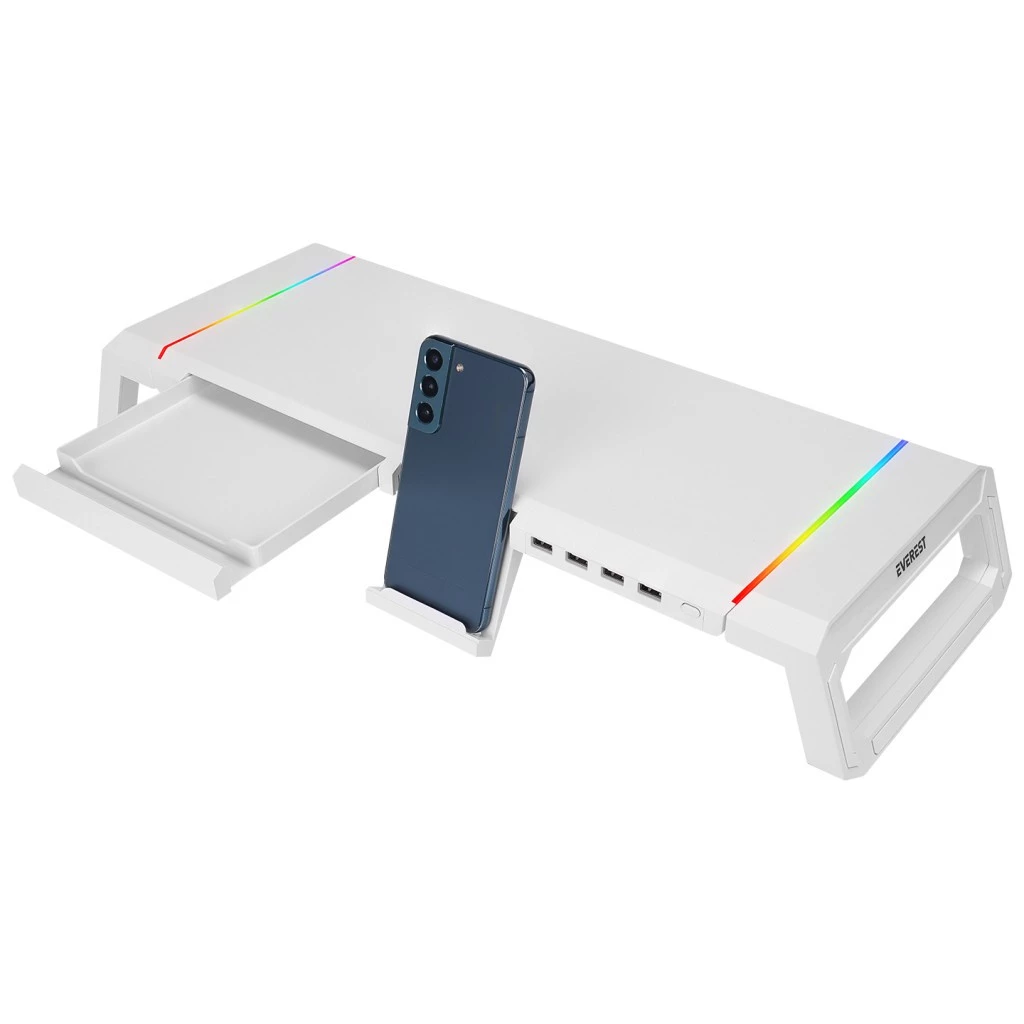 Everest ST1 4 USB Hub RGB Monitor White Stand