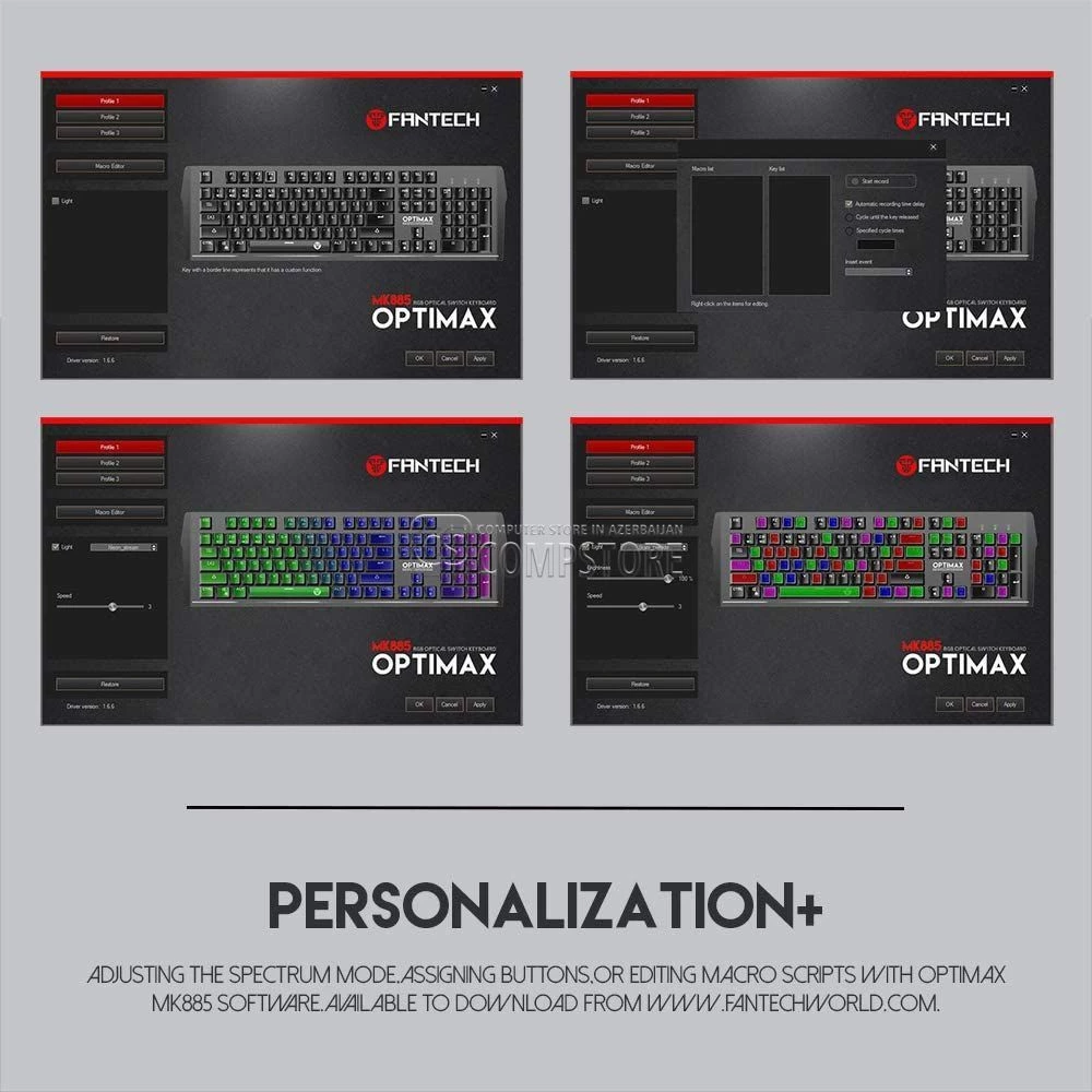 Fantech MK885 OPTIMAX Gaming Keyboard ən son istehsal edilən modellərdən biridir. Yüksək keyfiyyətli və uzun müddət stabil çalışmağı isə, istifadəçi üçün ideal seçimdir. Fantech MK885 OPTIMAX Gaming Keyboard modelini dükanımızdan sizə münasib qiymətə sifariş edə bilərsiniz. Dükanımız istər online istərsə də real olaraq satdığı hər bir texnikaya yazılı rəsmi zəmanət təqdim edir. Daha ətraflı məlumat almaq üçün dülkanımızın menecerləri ilə əlaqə saxlayın. Fantech MK885 OPTIMAX Gaming Keyboard modeli Bakıda ucuz satis qiymeti almaq və endirimlər üçün dükanımıza müraciət edin. Ucuz qiymətə kredite almaq istəyirsinizsə dükanımızla əlaqə saxlayln. Hissə-hissə almaq üçün yalnız şəxsiyyət vəsiqəsi lazımdır. Kredit qiymət üçün malın üzərində hissə-hissə ödəmə düyməsinə klik edin və 3,6,9,12 aylıq ödəniş üçün məbləği görə bilərsiniz. Cəmi 15 dəqiqəyə banka gedmədən daxili kreditlə ucuz qiymətə Fantech MK885 OPTIMAX Gaming Keyboard ala bilərsiniz.