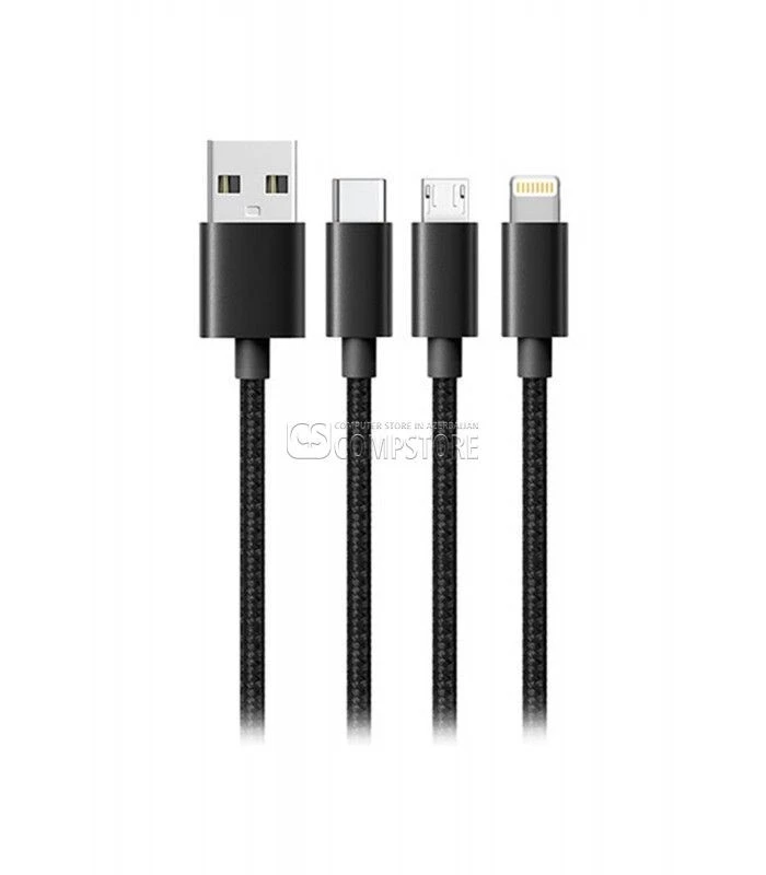 3 Amper | Type C | Lighntning | MicroUSB | Black Color | 1.2 Meters