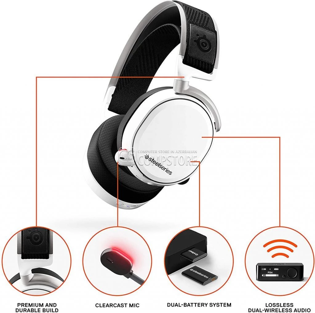SteelSeries Arctis Pro Wireless White Gaming Headset Qiymeti Bakıda rəsmi zəmanətlə ucuz qiymətə hissə hissə ödəmə ilə almaq.